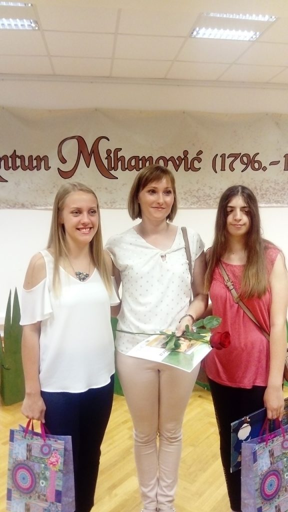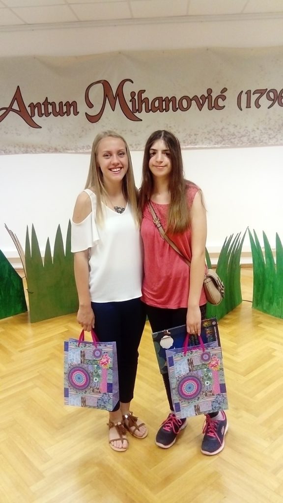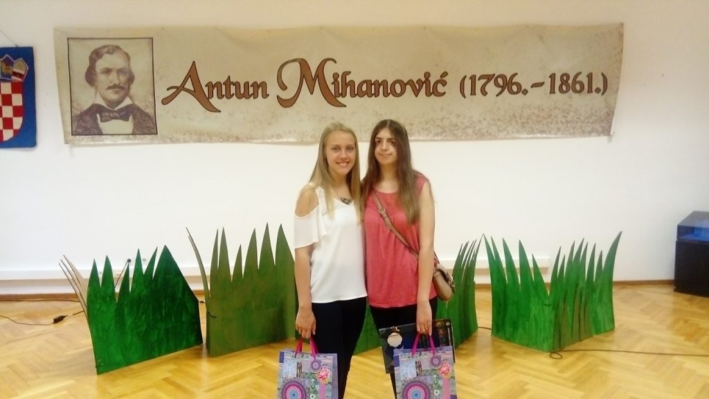 Natalija Boutana, učenica 1. a razreda osvojila je 2. nagradu za pjesmu “Dolazak”, a Veronika Iveković, učenica 1. pm razreda, 3. nagradu za pjesmu “Ne želim otići”. Veroniki i Nataliji na natječaju se priključio i učenik Juraj Mohač, a posebnu podršku pružila im je njihova prof. hrvatskoga jezika Nikolina Tuđa Svečak.