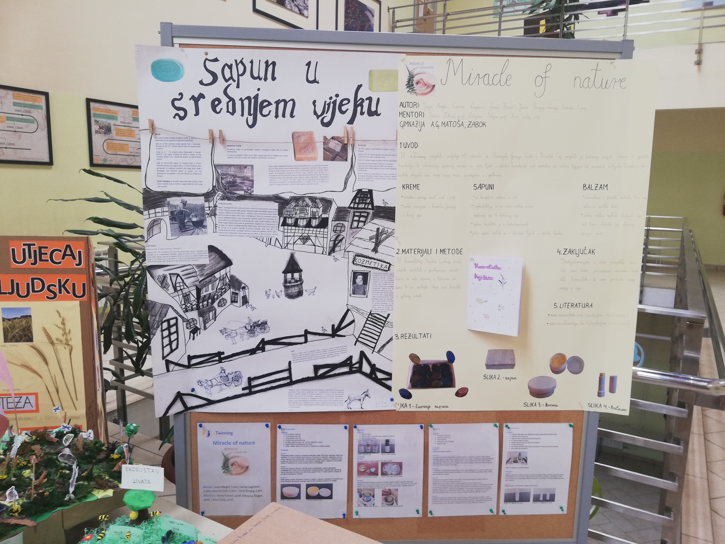 Aktiv prirodne grupe predmeta napravio je izložbu “Modeli u prirodoslovlju i Čuda prirode”. Učenici su mogli vidjeti modele atoma, stanica, organa i organskih sustava i modele ekosustava. Mogli su provjeriti svoje znanje rješavanjem zadataka pomoću QR kodova. Na izložbi su bili izloženi plakati Sapun u srednjem vijeku i plakat Miracle of Nature. Taj sat u učionici biologije učenice 1.pm razreda koje sudjeluju u projektu Miracle of Nature imale su radionicu i pokazale kako proizvesti kremu za ruke i balzam za usne, a prikazan je i video kako proizvesti sapune. Na hodniku su postavljeni plakati u obliku lente vremena gdje su učenici mogli vidjeti na kojim su državnim natjecanjima sudjelovali učenici naše škole iz prirodne grupe predmeta od 1995.- 2023. godine i koji su bili državni prvaci. Ispred učionice fizike učenici su mogli uživati u sladoledu koji je napravljen s tekućim dušikom.