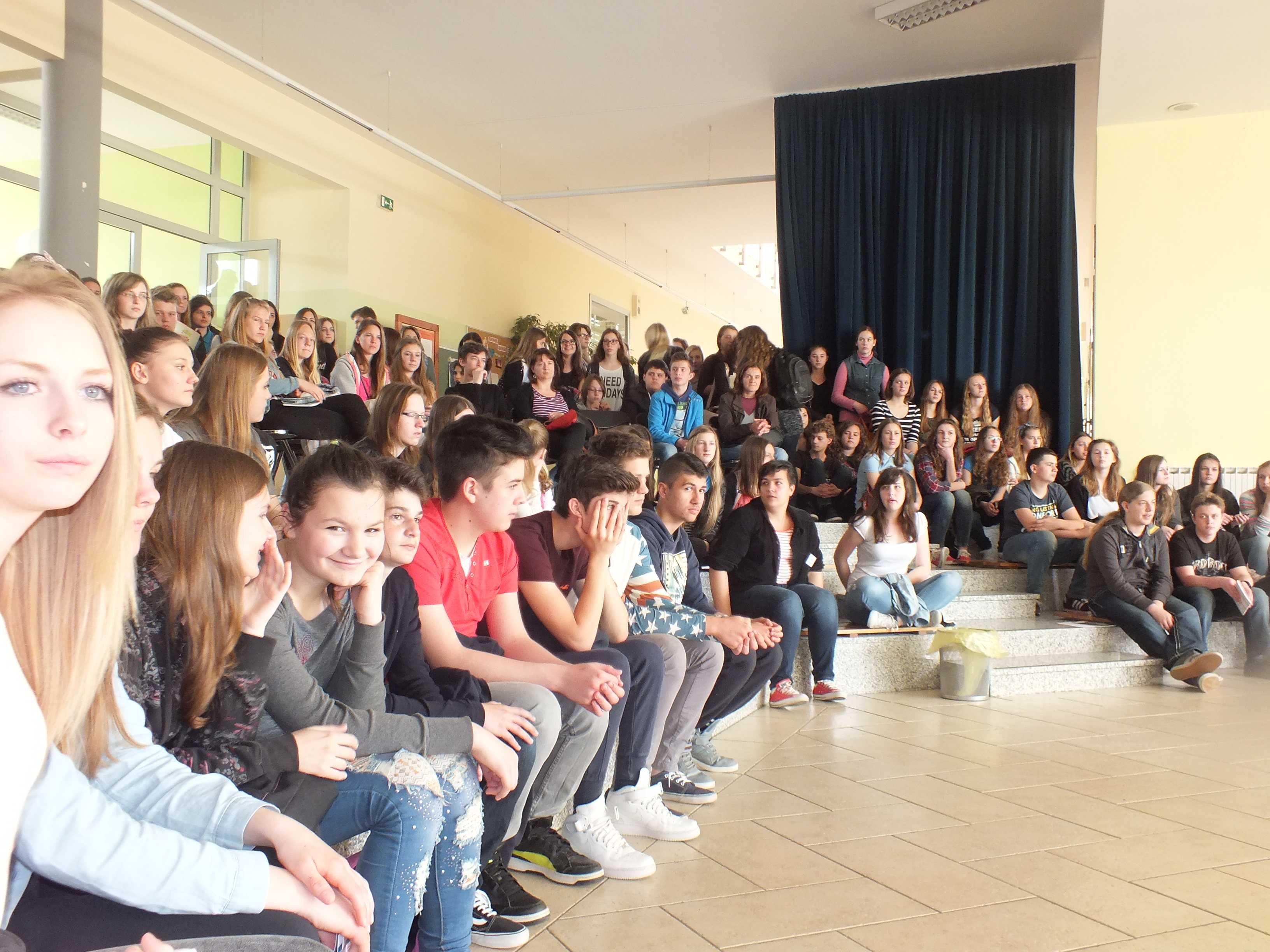 Preko stotinjak učenika pratilo je u prijepodnevnim satima (11.15–12.00) središnji program u gimnazijskom forumu, popraćen pozdravom i Nastavi čitati