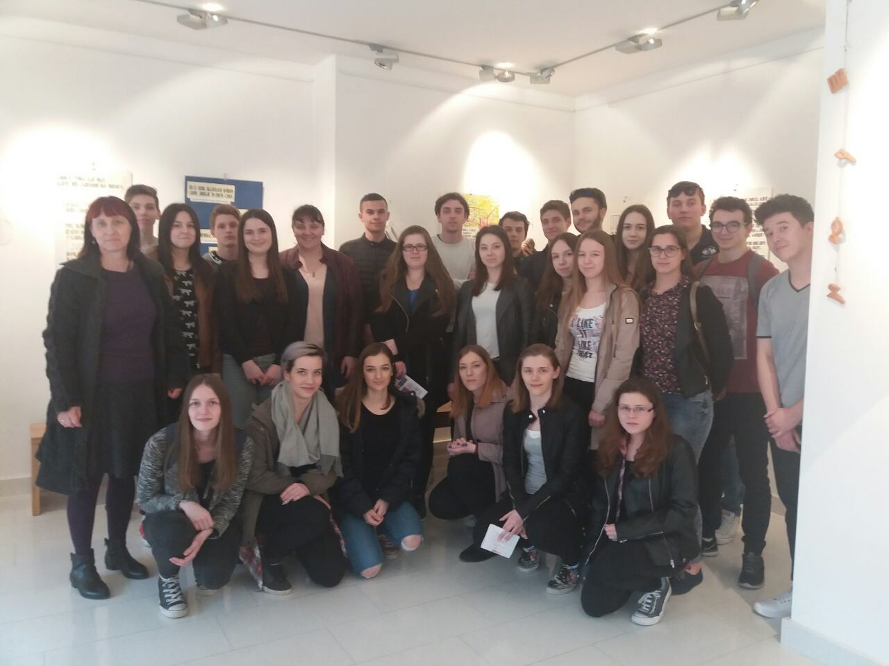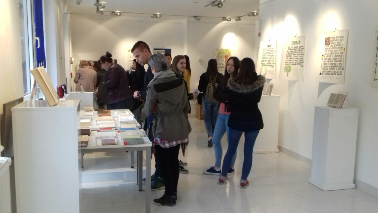U mjesecu posvećenom materinskom jeziku u Gradskoj knjižnici K. Š. Gjalskog postavljena je izložba o hrvatskom jeziku i pismu JEZIK govorimo – PISMO pišemo koju su povodom Danâ hrvatskog jezika (11. -17. 3.) posjetili neki naši gimnazijalci (učenici 4. b razreda i polaznici dodatne nastave iz hrvatskog jezika).