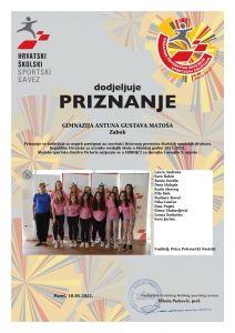 U Poreču je od 10. do 12. svibnja 2022. održano državno prvenstvo u odbojci. Našu županiju predstavljala je ekipa ŠSK Victoria Gim AGM pod mentorstvom profesorice Petre Petrovečki Nevistić. Djevojke su izvrsnom igrom uspjele izboriti 9. mjesto. Čestitamo djevojkama na hrabroj i odličnoj igri!