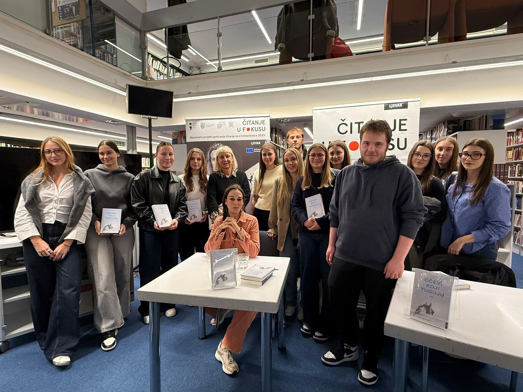 Potpuno drukčije iskustvo je vidjeti i čuti književnika/cu uživo, dobiti potpis i rečenicu za sjećanje u svoj primjerak knjige i fotografiju s umjetnicom kao što su to ČUF-ovci imali priliku u četvrtak 9. listopada 2025. u Knjižnici „Bogdan Ogrizović“ u Zagrebu. Četrnaest zabočkih gimnazijalaca predvođeno mentoricom Sandrom Babnik Lončar susrelo se s nizozemskom književnicom Carmien Michels čiju smo zbirku pripovijedaka „Očevi koji tuguju“ upravo pročitali. Neki već imaju par knjiga s potpisom u svojoj kućnoj knjižnici, a pojedincima je bio zanimljiv susret vrijedan pamćenja.