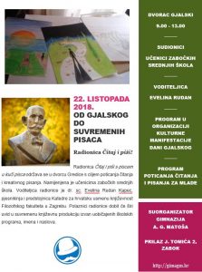 U ponedjeljak 22. listopada u jutarnjim satima s radom kreće radionica Eveline Rudan. I naši učenici će joj se pridružiti u Dvorcu Gjalski, uz učenike ostalih zabočkih srednjih škola. Više o programu možete pronaći na njegovom plakatu. Želimo im mnogo zabave uz ugodan rad…