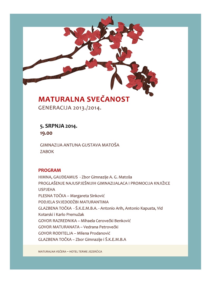 5. SRPNJA 2014. u 19.00Program maturalne svečanosti