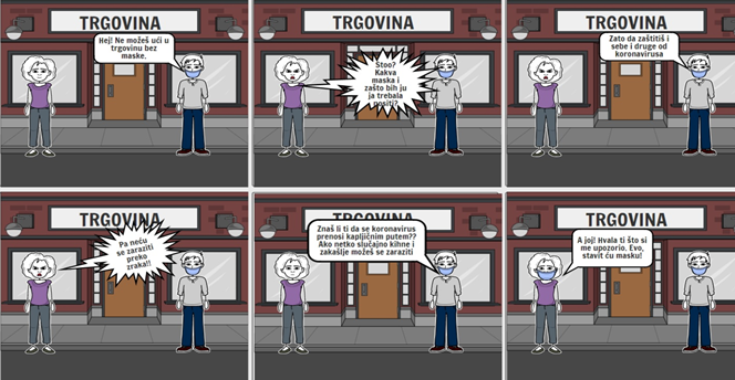 Učenici 2. i 3. razreda Gimnazije A. Matoša Zabok koji sudjeluju u projektu Biosigurnost i biozaštita imali su zadatak da u programu za izradu stripa prikažu načine prijenosa korona virusa. Dobili su i preporuku da strip bude kreativan, humorističan, razumljiv i prilagođen uzrastu.