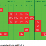 difterije, tetanusa, hripavca, dječje paralize, ospica, zaušnjaka, rubeole, tuberkuloze, hepatitisa B, bolesti izazvanih s Haemophilus infl. tipa B.