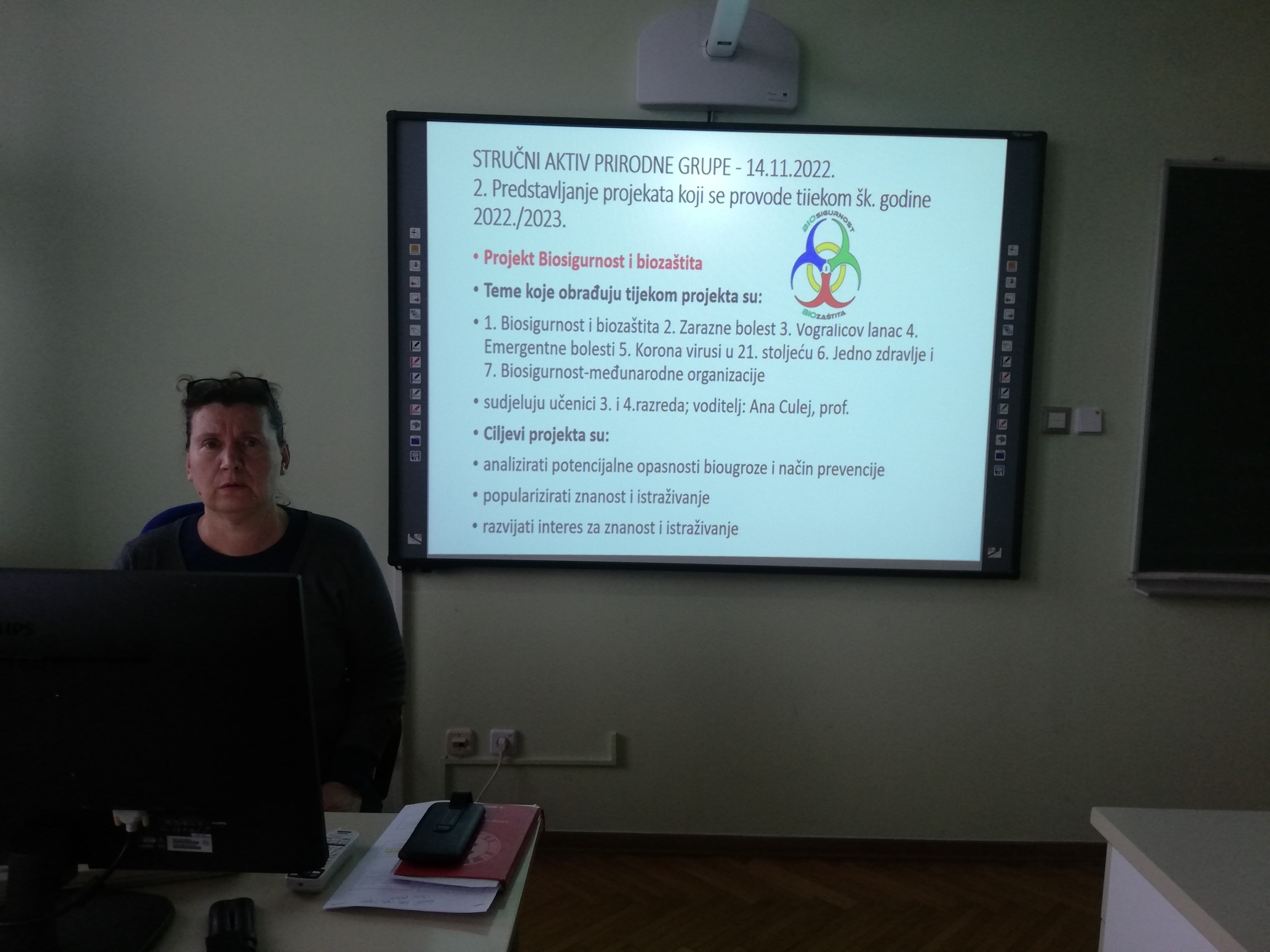 Projekt je Biosigurnost i biozaštita je predstavila voditeljica projekta Ana Culej na Stručnom aktivu prirodne grupe predmeta 14.11.2022.