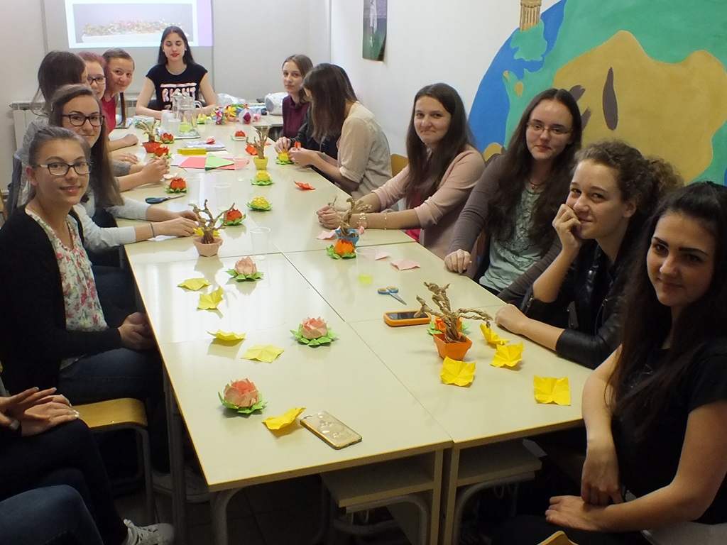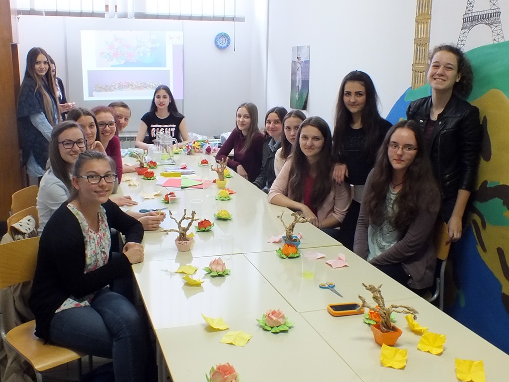U utorak 10. svibnja 2016. su odabrani učenici 2.b imali radionicu na temu “Izrada origami drvca i lopoča”. Radionicu je vodila Hana Bosilj- učenica SŠ Krapina.