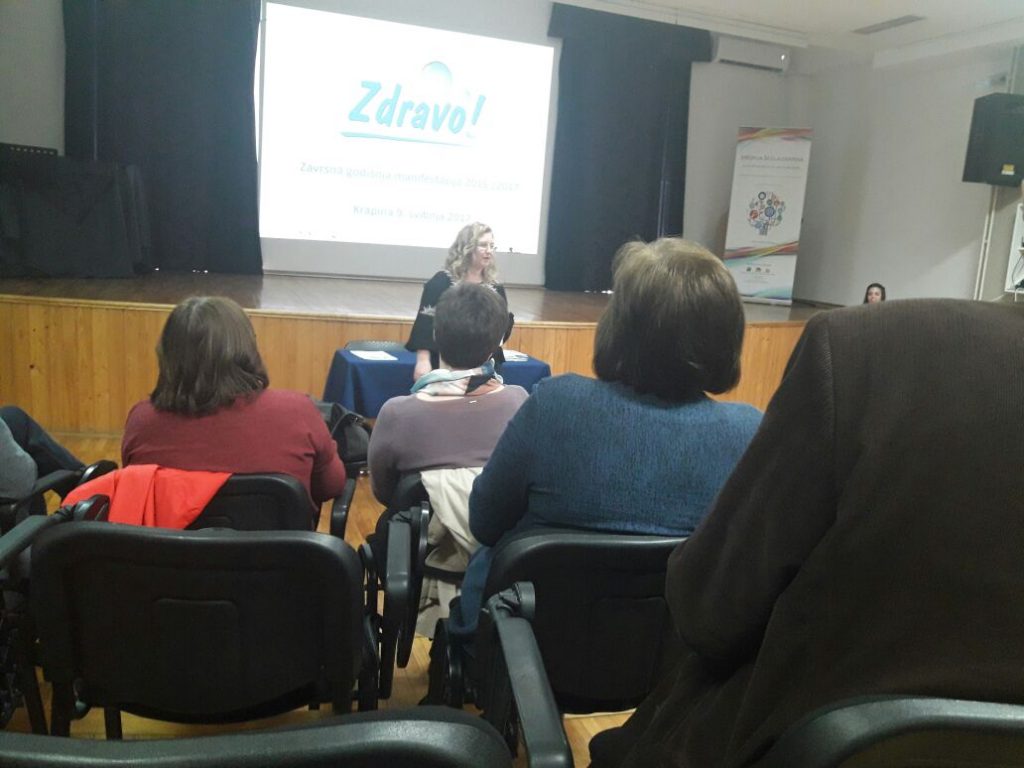 Završna manifestacija projekta bezalkoholnih navika Zdravo održala je u Krapini 9. svibnja. Ispred naših devet vrijednih i maturantskim obvezama opterećenih edukatorica i edukatora sudjelovale su vršnjačke edukatorice Valerija Brlek i Karolina Tretinjak iz 4.a razreda.